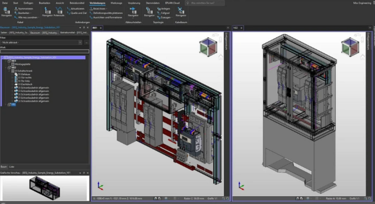 Com o software Eplan Pro Panel, o planeamento transforma-se num design visualmente impactante. Desta forma, é possível identificar problemas de espaço, colisões ou cablagem incorreta nas primeiras fases do planeamento. Isto torna a documentação uma ferramenta ativa para o controlo de qualidade.