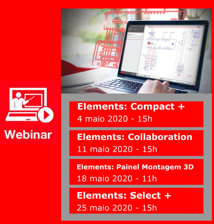 Os webinares EPLAN oferecem as melhores dicas e truques para a utilização do nosso software CAE. Perante o desafio sem precedentes em que nos encontramos, temos a oportunidade de aproveitar o tempo de que dispomos da melhor forma possível e a aprendizagem é, sem dúvida, uma excelente oportunidade para nos mantermos competitivos. Por isso, o mês de maio também será dedicado a um ciclo de webinares onde iremos abordar os Elements como o novo conceito de modularização da plataforma EPLAN.